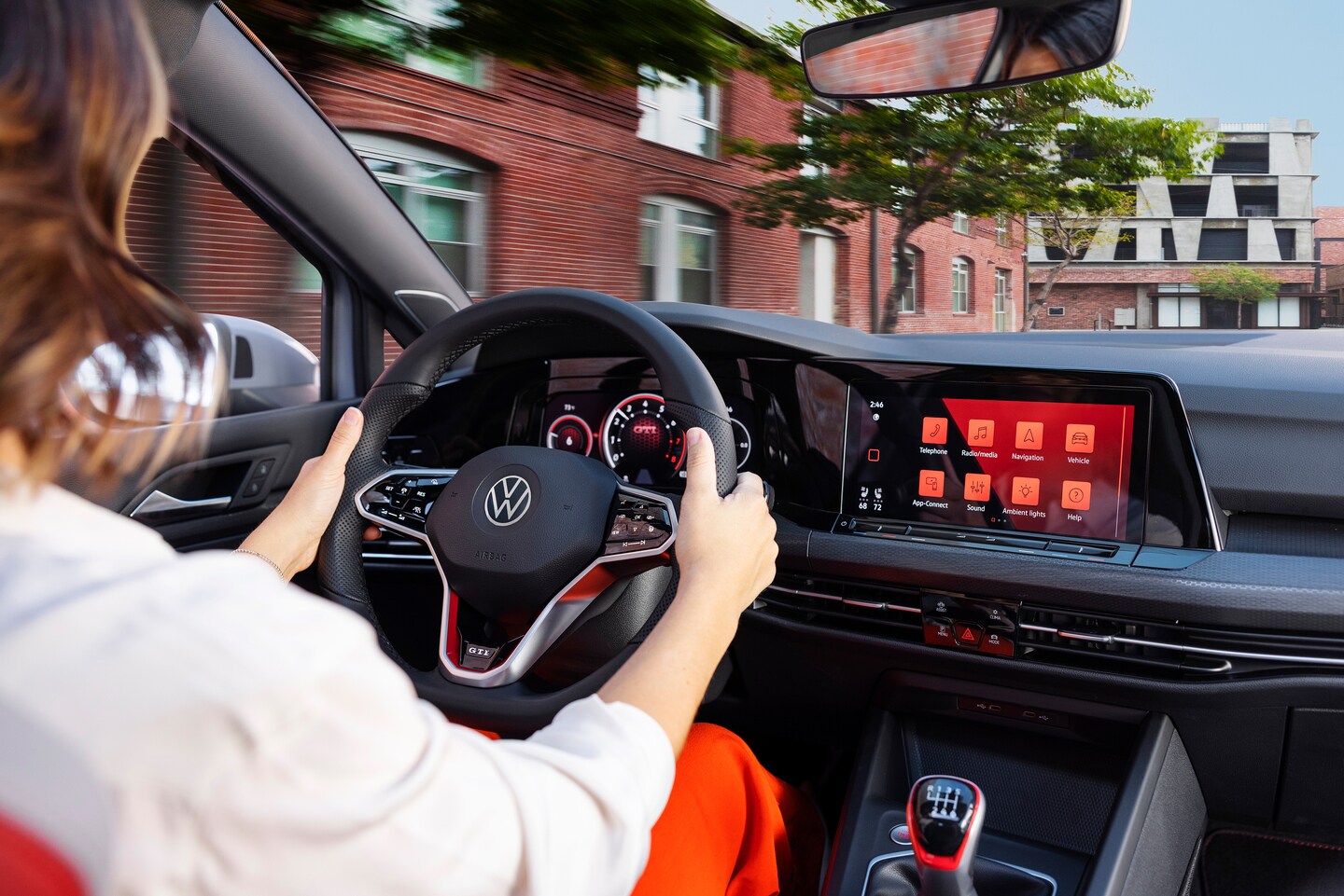 The Golf GTI's cabin is surprisingly spacious and versatile for a compact car. The front sport seats are surprisingly comfortable and supportive, even on longer drives beyond the Clifton area. Rear-seat passengers will enjoy more legroom and headroom than in many rival hatchbacks. With the rear seats upright, the GTI's hatch area offers 22.8 cubic feet of cargo space - plenty of room for groceries, luggage, or sports gear. Fold those rear seats down, and you'll have a generous 52.7 cubic feet to work with. That's more than you'll find in competitors like the Subaru WRX